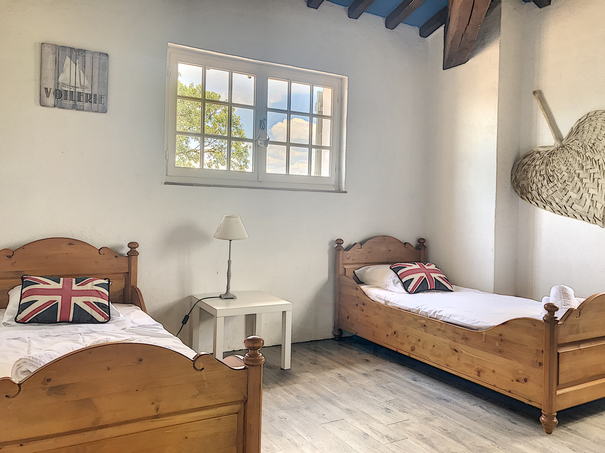 Two bedrooms each with a double bed, a cabin bedroom with a bunk bed, a mezzanine with two single beds that can be joined together, a bathroom, a shower room, two independent toilets, a living room, a kitchen opening onto a beautiful covered terrace.