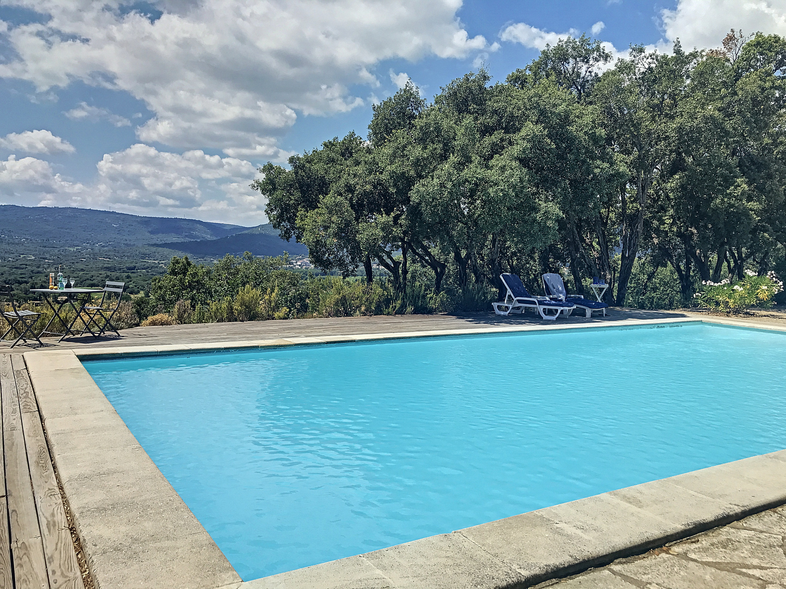 Enjoy the magnificent, secure swimming pool with deckchairs. (Completely secured by a low stone wall and closed by a small gate).