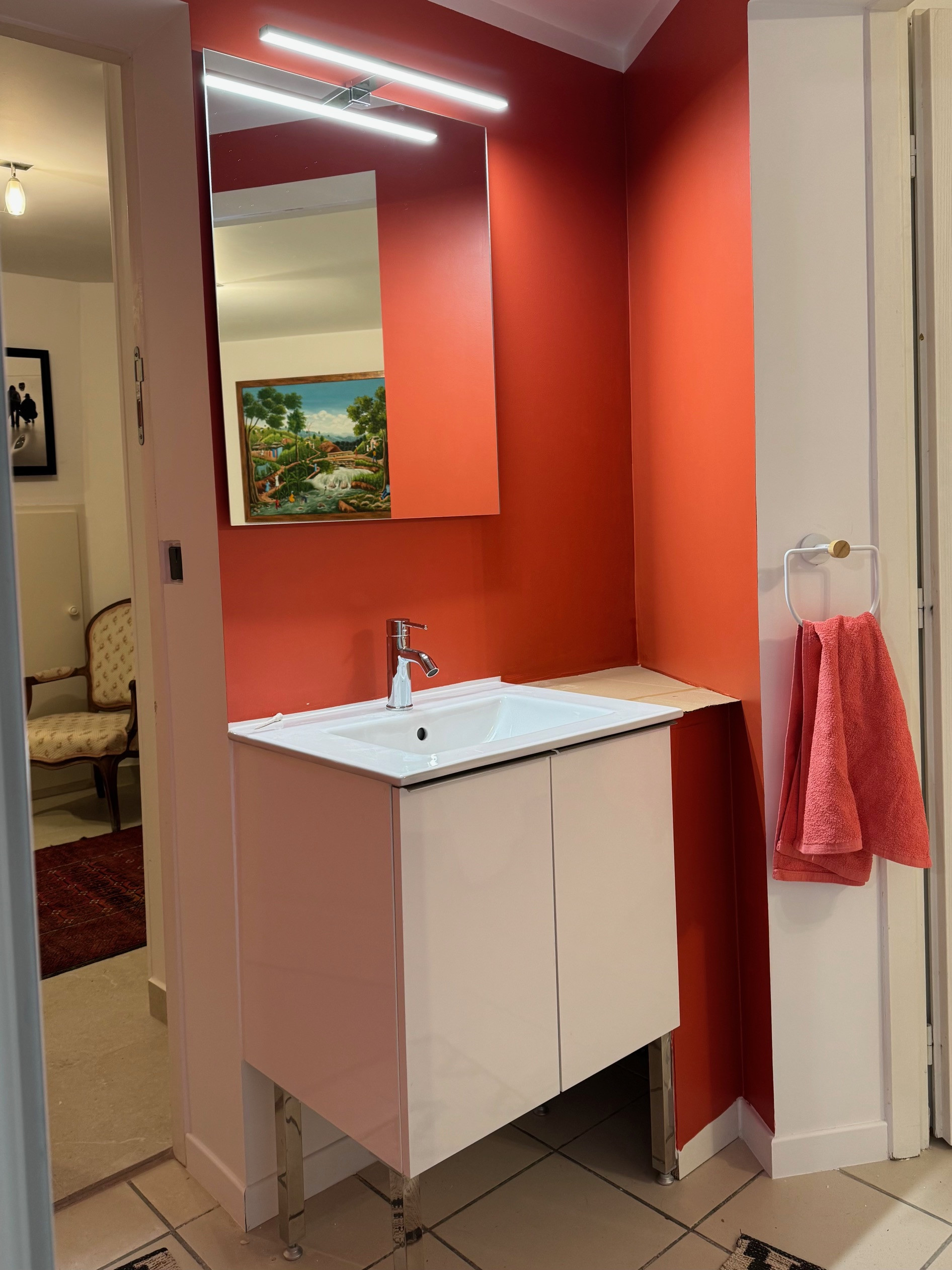 1 salle de douche avec deux vasques . 1 toilette indépendant.